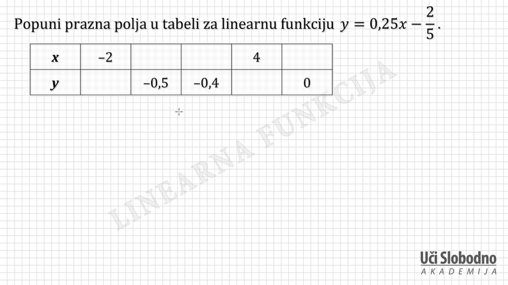 Grafik linearne funkcije – Zadatak 1