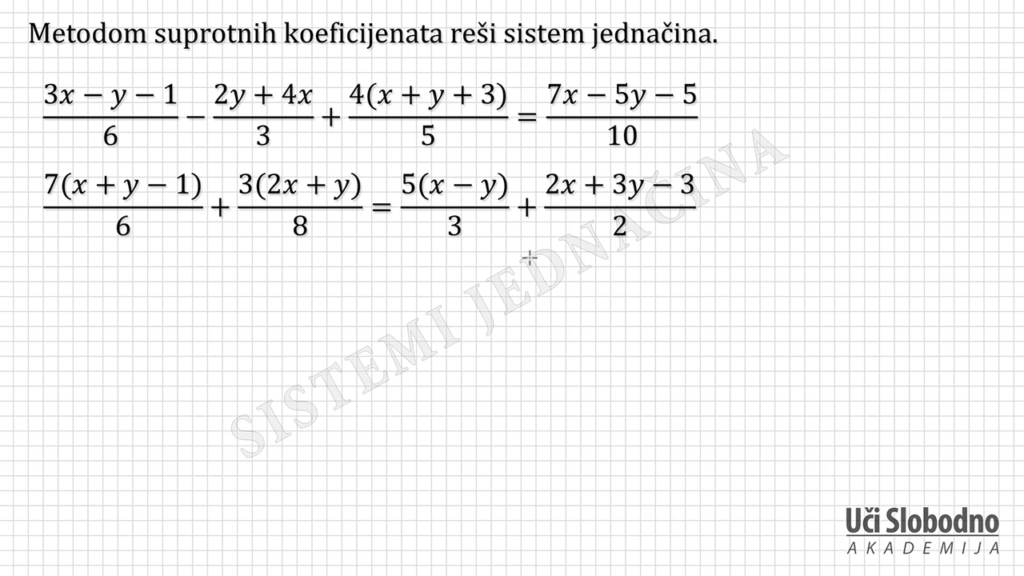 Sistemi jednačina sa dve nepoznate – Zadatak 1
