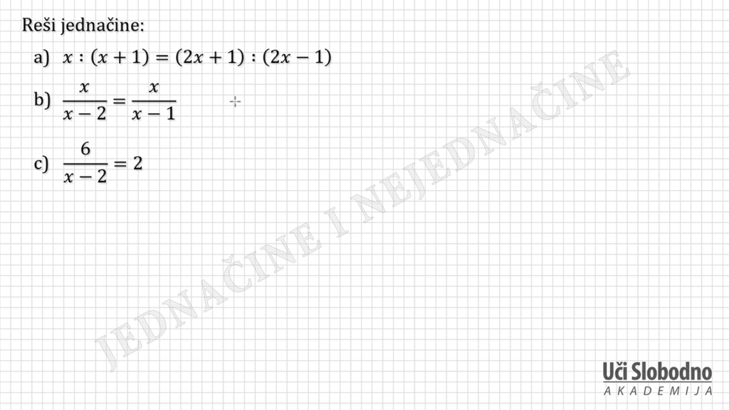 Rešavanje jednačina sa jednom nepoznatom - Zadatak 1